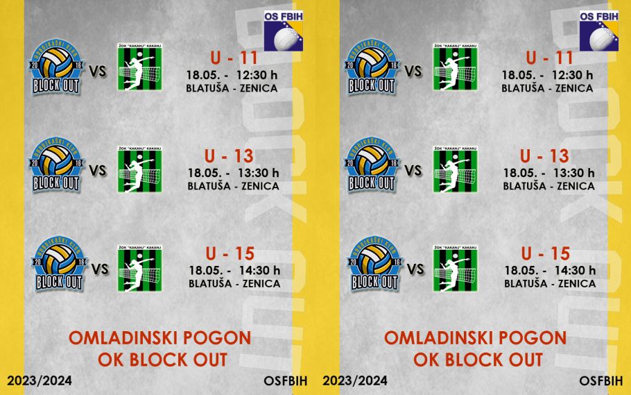 U subotu OK BLOCK OUT dočekuje ŽOK KAKANJ u utakmicama omladinskih selekcija