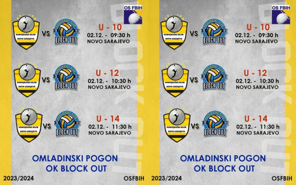 Utakmice se igraju u Sportskoj dvorani NOVO Sarajevo, u subotu 02.12.2023. godine, sa početkom u 09:30 sati.
