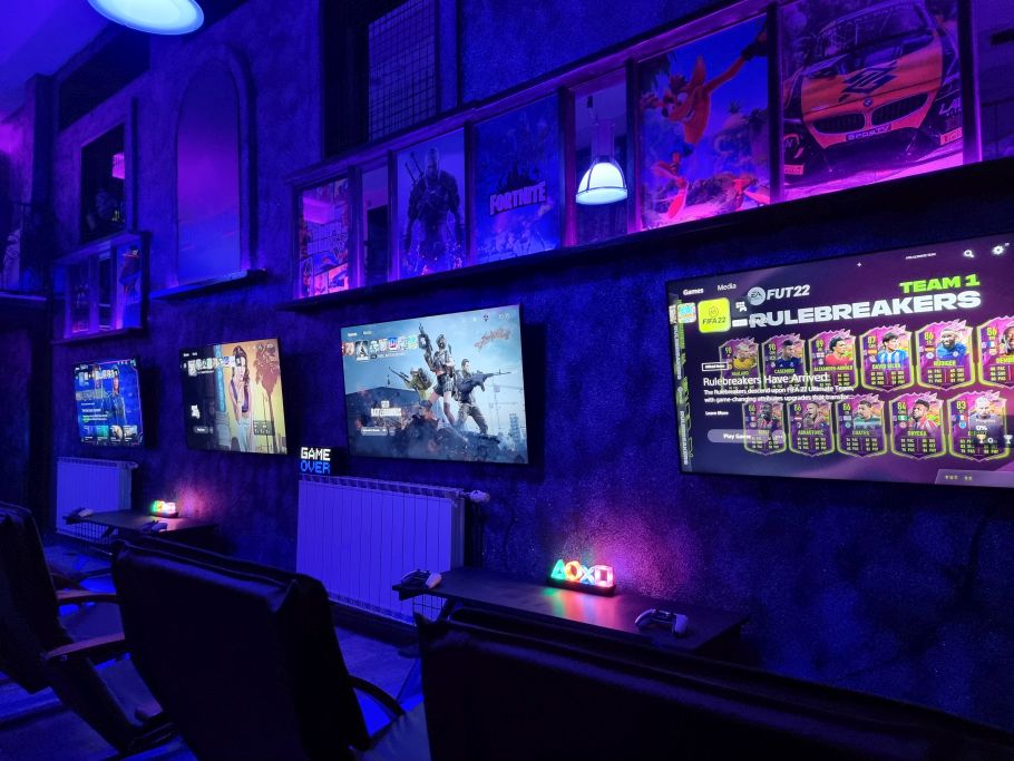 PS5 konzole i Samsung 55″ 4k UHD SmartTV daju našim posjetiocima vrhunski gamerski ugođaj, a ambijent samog kluba daje igračima motivaciju da se što više užive u sadržaj igara koje nudimo.
