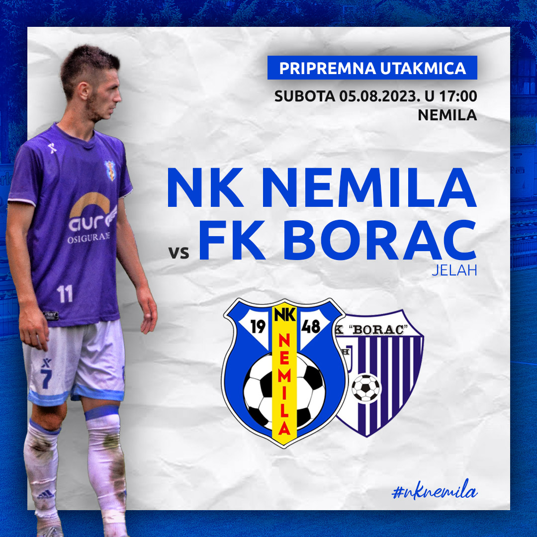 -U subotu nova utakmica na našem stadionu! Nakon 4 uvjerljive pobjede, na megdan našoj ekipi dolazi, uvijek kvalitetna, ekipa Borca iz Jelaha, koja se također takmiči u Drugoj ligi FBiH – Centar, te godinama se nalazi u vrhu tabele. Ovo će biti još jedna odlična i kvalitetna provjera za naše igrače, te vas pozivamo da u subotu dođete na stadion i podržite naše sjajne momke i trenere! -, stoji u objavi NK Nemila.