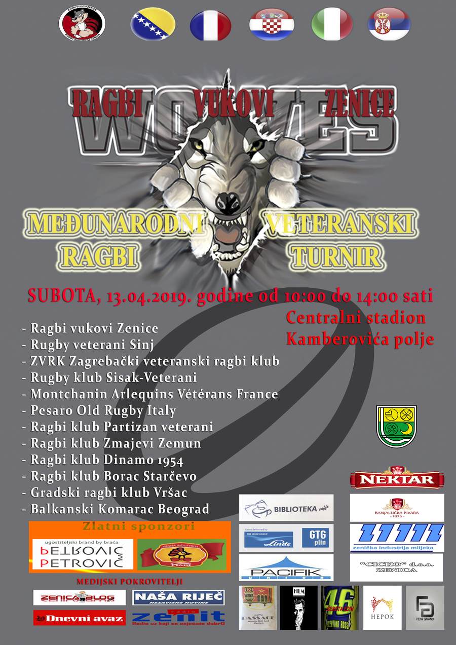 U subotu u Zenici do sada najjači veteranski rugby turnir u ovom dijelu Evrope –  „Ragbi Vukovi Zenica“  nakon što je funkciju istoimenog kluba predsjednika preuzeo Andrija Petrović, svojim trudom i zalaganjem potrudio se da ove godine organizuje najjači veteranski ragbi turnir u ovom dijelu Evrope.