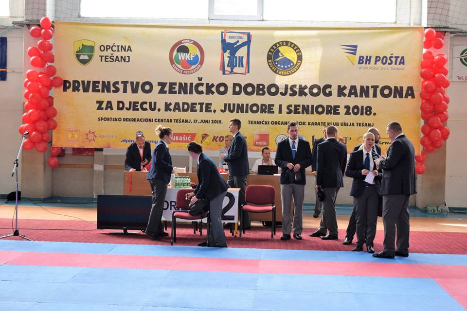 Protekle nedjelje, 17.6. u Tešnju je održano Prvo prvenstvo Zeničko-dobojskog kantona u karateu, za djecu, kadete, juniore i seniore. Karate klub “Unija” Tešanj bio je domaćin i tehnički organizator ovog takmičenja, koje je održano u Gradskoj dvorani JU “Sportsko-rekreacioni centar” Tešanj.