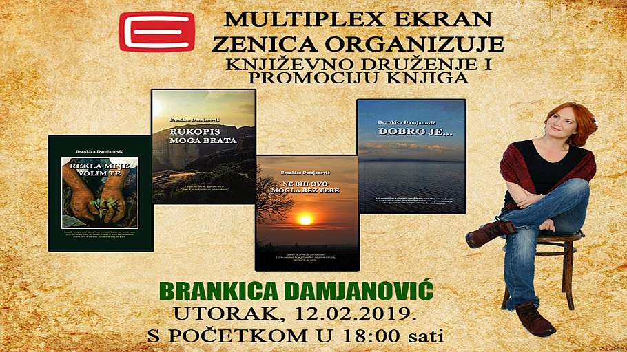 U utorak književno druženje sa Brankicom Damjanović u Multiplex Ekranu Zenica – Multiplex “Ekran” Zenica u utorak, 12. februara organizuje književnu večer sa Brankicom Damjanović, jednom od najpoznatijih spisateljica u regiji. Naime, promocija počinje u 18:00 sati u restoranskom prostoru Multiplexa, a publika će imati priliku da kroz književno druženje čuje neke od najljepših priča Brankice Damjanović, ali i da uživa u bogatom književno-muzičkom programu.