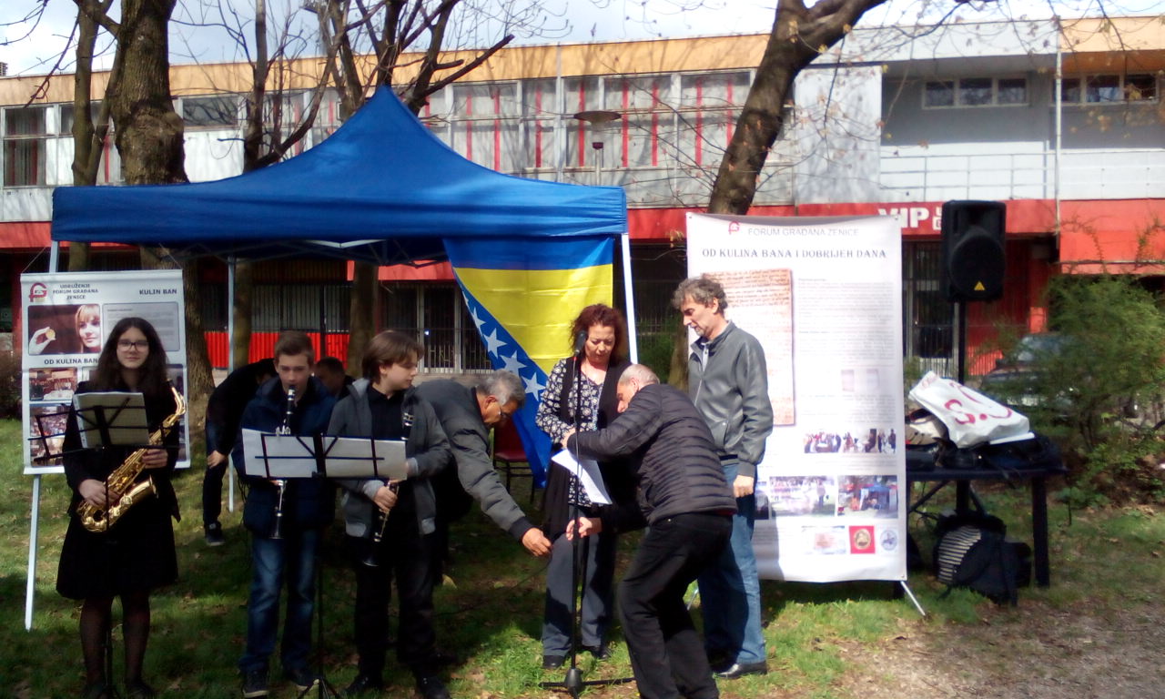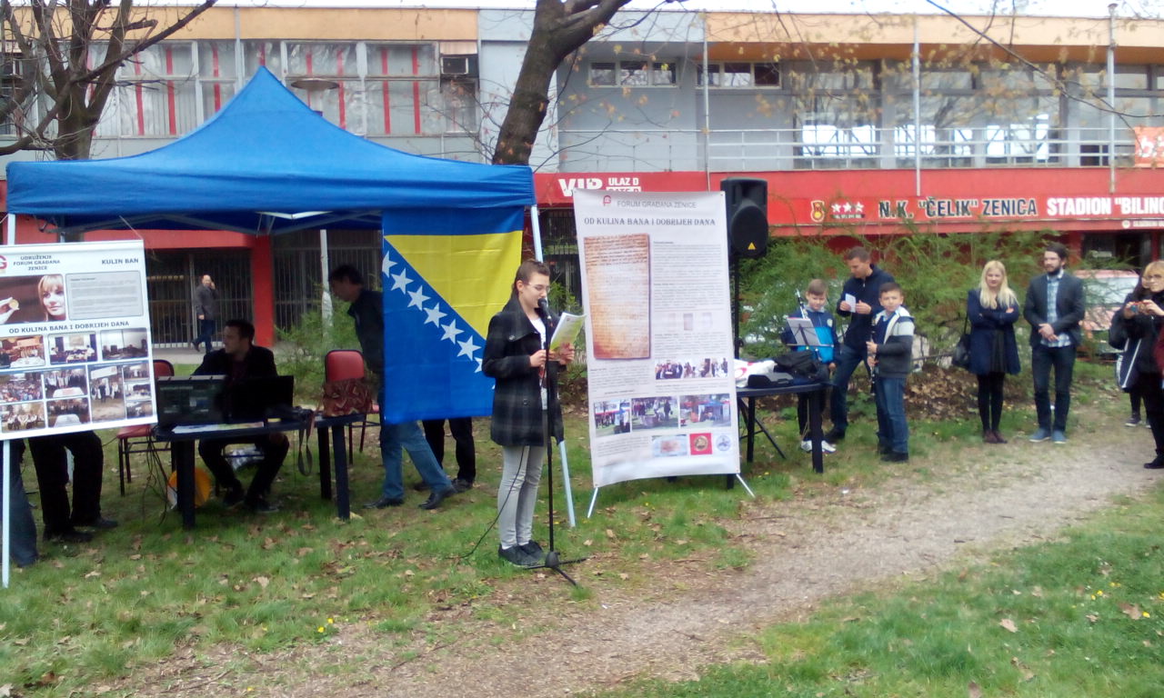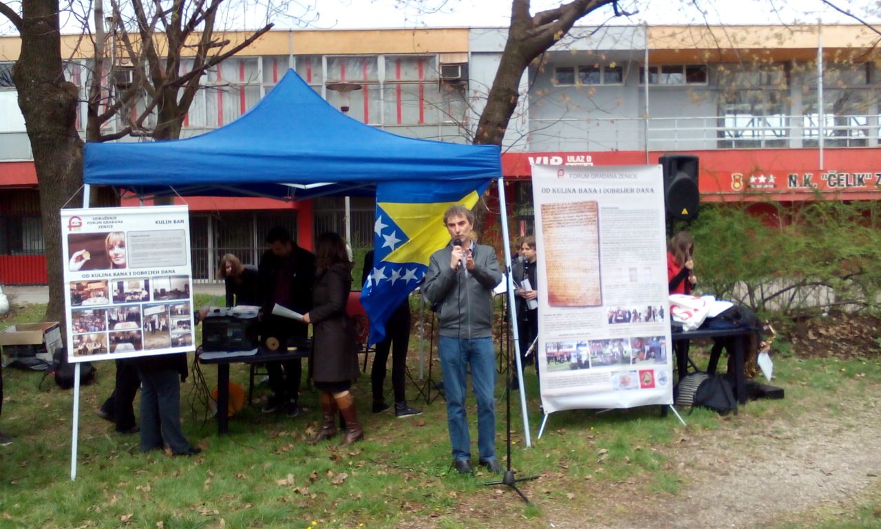 Manifestacija je održana kod Spomen ploče Kulinu banu, u parku ispred istočne tribine stadiona Bilino polje, u organizaciji Foruma građana Zenice i u prisustvu pristojnog broja posjetilaca.