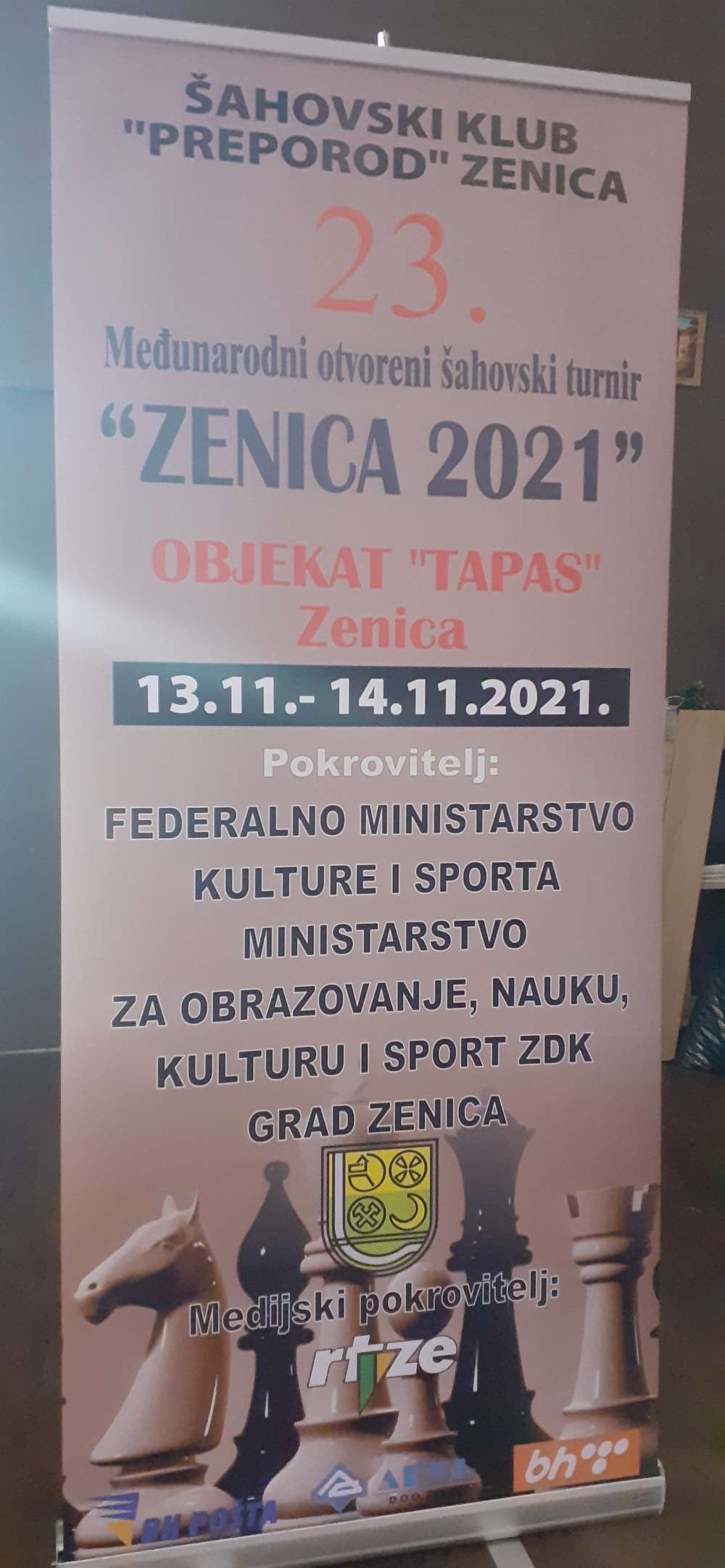 Dvadeset treći međunarodni otvoreni šahovski turnir “ZENICA 2021.”, otvoren je danas u Zenici i biće dvodnevni 13. i 14.11.2021. godine. Učestvuje 26 šahista, među kojima su tri velemajstora (GM), tri intermajstora (IM) i jedan FIDE majstor (FM).