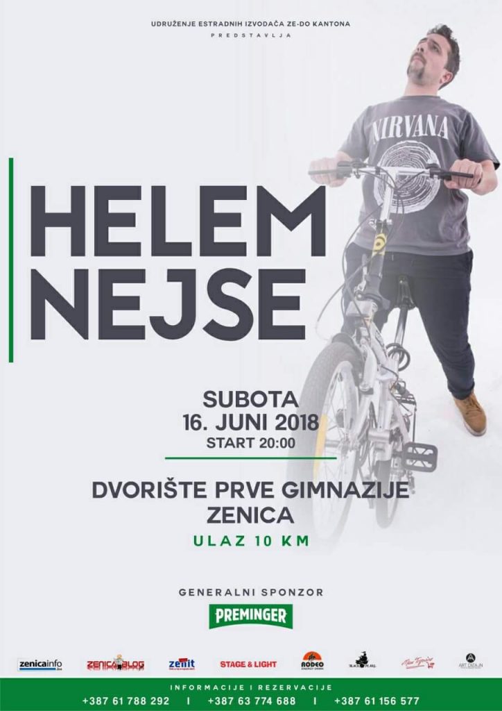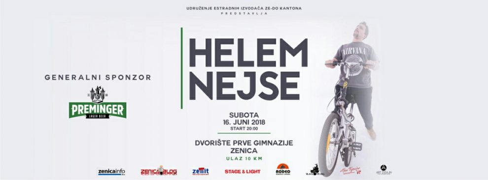 U Zenici po prvi put – koncert kultnog benda HELEM NEJSE – U Zenici, 16.06.2018. (drugi dan Bajrama) sa početkom od 20:00, svoj prvi solistički koncert, održat će sarajevska grupa HELEM NEJSE, u dvorištu Prve gimnazije Zenica, a u organizaciji Udruženja estradnih izvođača ZDK.