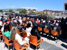 – “Danas osjećam veliki ponos kada stojim pred vama, hrabrim i posvećenim policijskim službenicima. Svjesno neću da koristim fraze, jer vaš posao to ne zaslužuje. Dolazite prvi na mjesto saobraćajne nezgode u kojoj su smrtno stradala lica, nekad su to i djeca, stariji ljudi, slike koje vas prate do kraja života. U hladnoj i mrkloj noći zaustavljate i kontrolišete lica, ne znate ko je sa druge strane i kakve su mu namjere ali obavljate svoj zadatak. Izvršioci najtežih krivičnih djela su spremni na sve i sa tom spoznajom vi djelujete da ih pronađete i lišite slobode, jer su prijetnja drugim ljudima, i nemojte mi reći da za to nije potrebna hrabrost. Postoji mudra izreka koja kaže da hrabrost nije ne osjećati strah u nekoj situaciji, nego je hrabrost suočiti se sa strahom i pobijediti ga. Vi se svakodnevno suočavate sa situacijama koje svakom normalnom čovjeku izazivaju strah ali i pored toga djelujete na sigurnosni događaj u skladu sa svojim ovlaštenjima. Uniforma koju časno nosite treba da bude i jeste simbol države, vaše hrabrosti, posvećenosti, simbol ponosa. Zastava pod kojom danas stojimo nas ujedinjuje, kao simbol našeg identiteta, pripadnosti državi, kao simbol časti i odgovornosti. Nemojte to nikada zaboraviti.