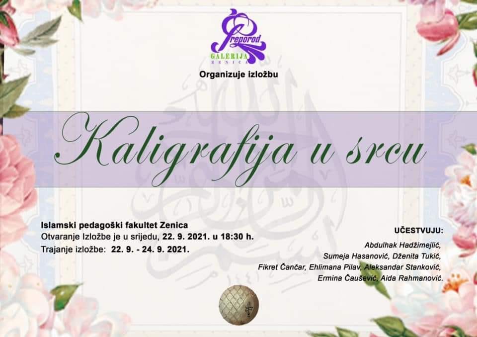 U Zenici u toku izložba kaligrafije „Kaligrafija u srcu“- U organizaciji Galerije „Preporod“ Zenica u toku je izložba kaligrafije pod nazivom „Kaligrafija u srcu“.