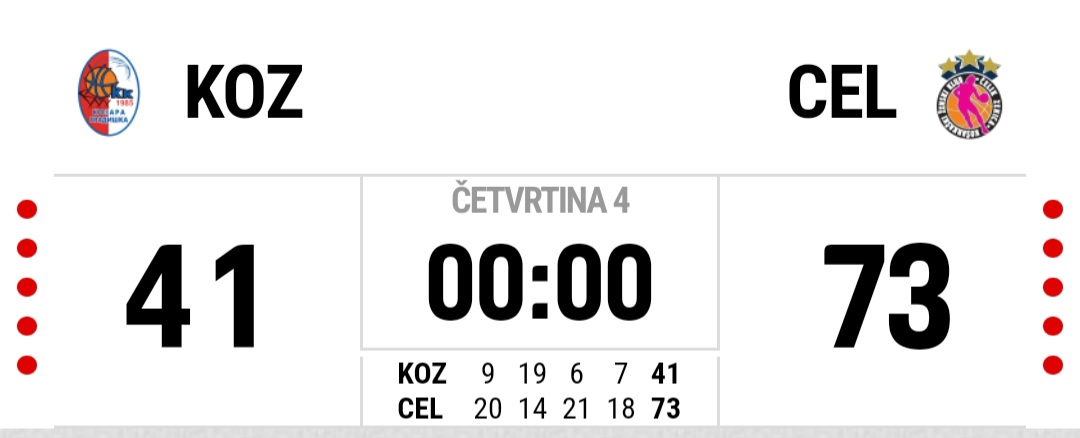 ŽKK KOZARA – KŽK ČELIK BH TELECOM 41:73 (9:20), (19:14), (6:21), (7:18);