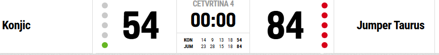 Konačan rezultat i rezultati po četvrtinama: ŽKK KONJIC – KK JUMPER TAURUS 54:84 (14:23), (9:28), (13:15), (18:18);