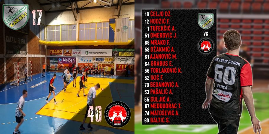 RK KAKANJ  – ŠR RK ČELIK JUNIOR 17:40 (5:20);