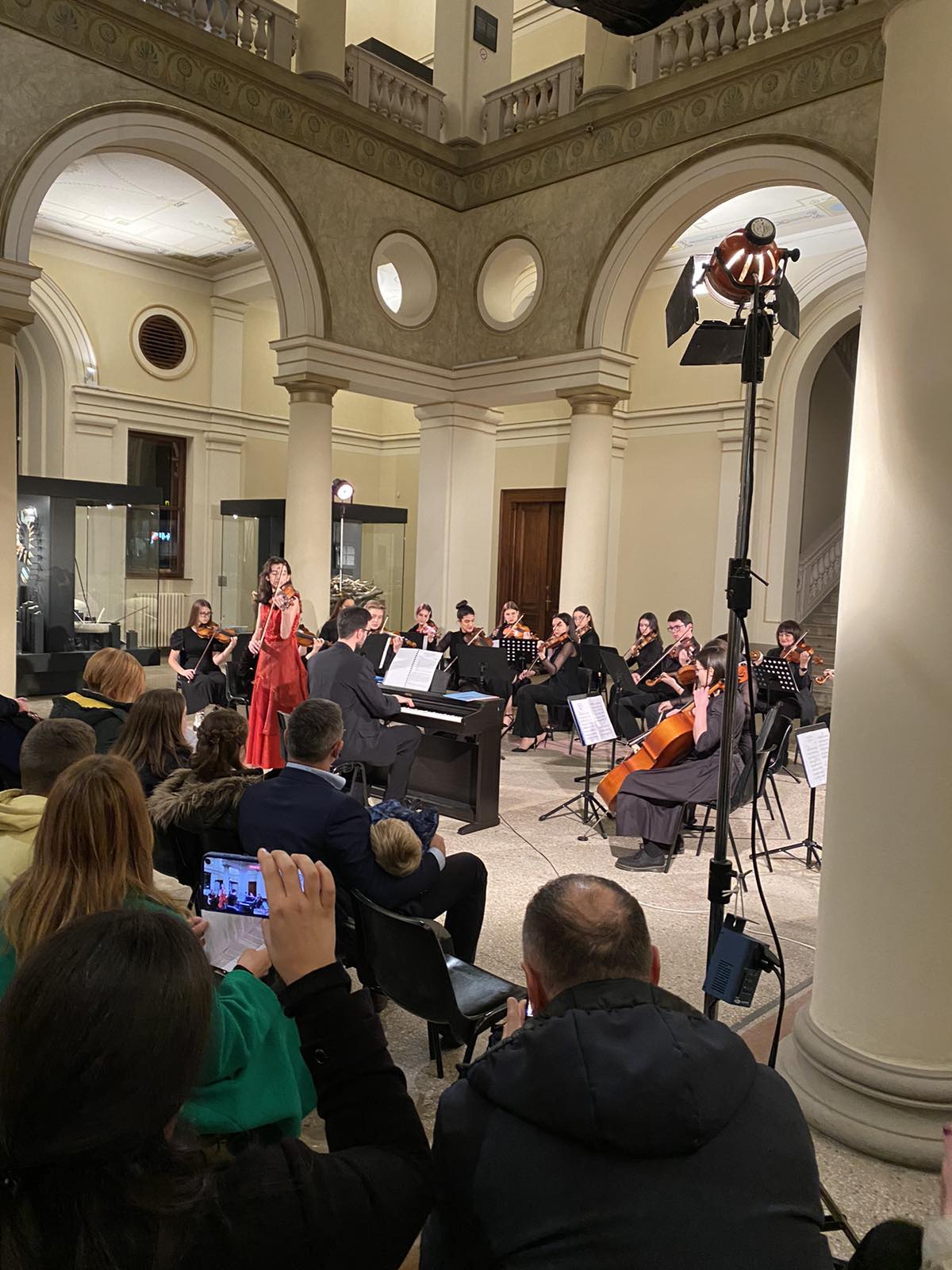 Kao mladi virtuozi Srednje muzičke škole u Zenici Naida Huseinagić (violončelo), Eva Čalija (violončelo) i Anja Udovčić (violina) pridružile su se članovima orkestra Muzičkog kampa za mlade virtuoze koji je održao koncert “Vivaldi- Četiri godišnja doba” u Zemaljskom muzeju BiH u Sarajevu.