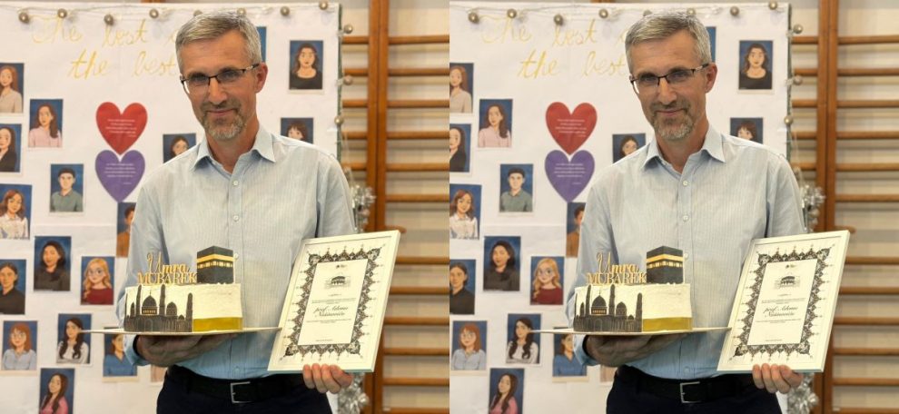 U znak zahvalnosti za posvećenost, trud i istinsku predanost u obrazovanju i odgoju, učenici Prve gimnazije u Zenici uručili su profesoru Islamske vjeronauke Ademu Nušinoviću izuzetno vrijedan poklon – odlazak na Umru.