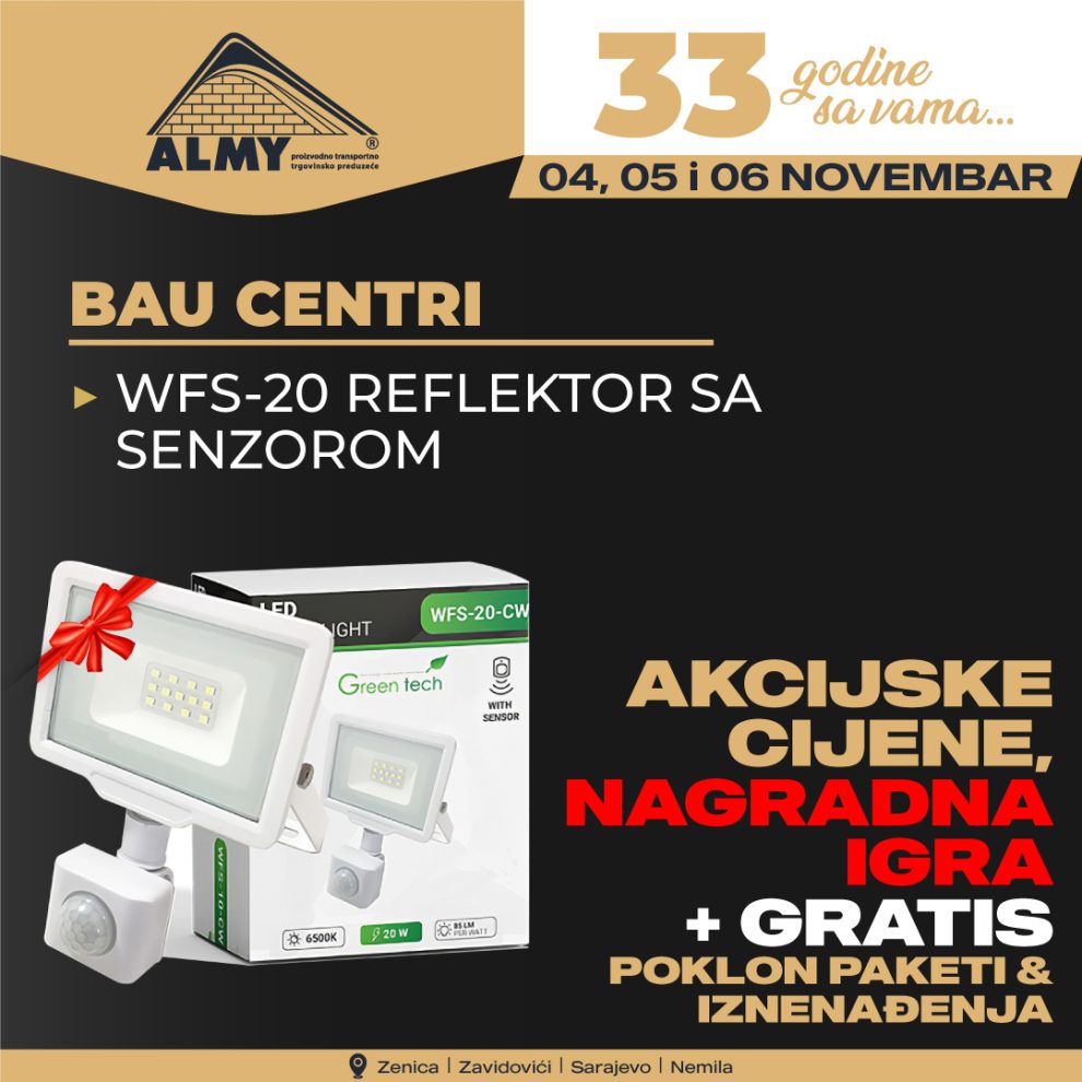 Svi kupci koji naprave račun veći od 100KM u Baucentrima ALMY u Zenici i Zavidovićima ili salonu Ceralmyco, 04, 05 i 06 novembra, ostvaruju pravo na učešće u nagradnoj igri! 🆒😍