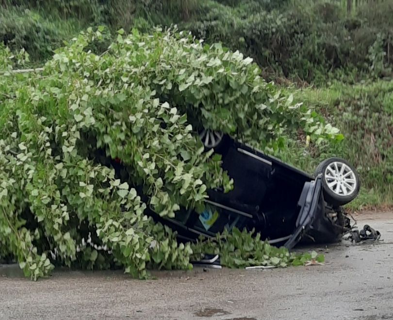 Fotografije s mjesta događaja pokazuju da je jedno vozilo završilo na krovu i od siline udara je prilično oštećeno.
