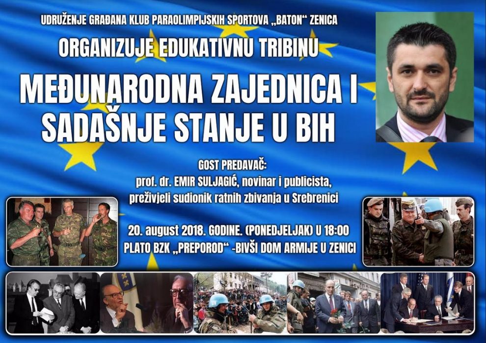 Udruženje građana Klub paraolimpijskih sportova „Baton“ Zenica, organizuje edukativnu tribinu pod nazivom MEĐUNARODNA ZAJEDNICA I SADAŠNJE STANJE U BIH.