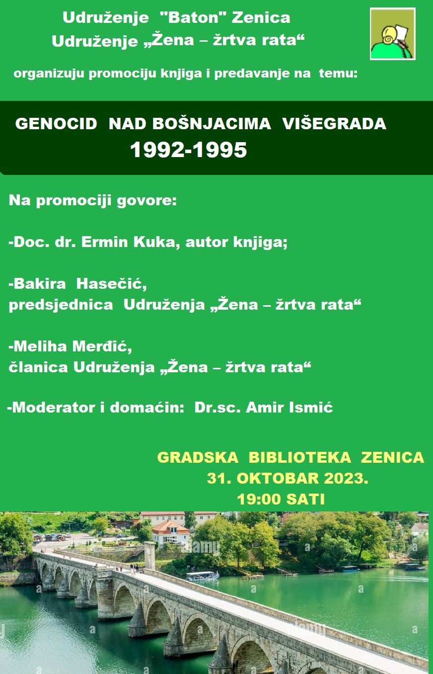 U cilju očuvanja sjećanja na kontinuirani genocid nad Bošnjacima, Udruženje „Baton“ Zenica je u utorak 31.10.2023. godine u prostorijama Gradske biblioteke Zenica, organizovalo edukativnu tribinu pod nazivom: “GENOCID NAD BOŠNJACIMA VIŠEGRADA 1992-1995“, kroz prizmu trideset godina poslije.