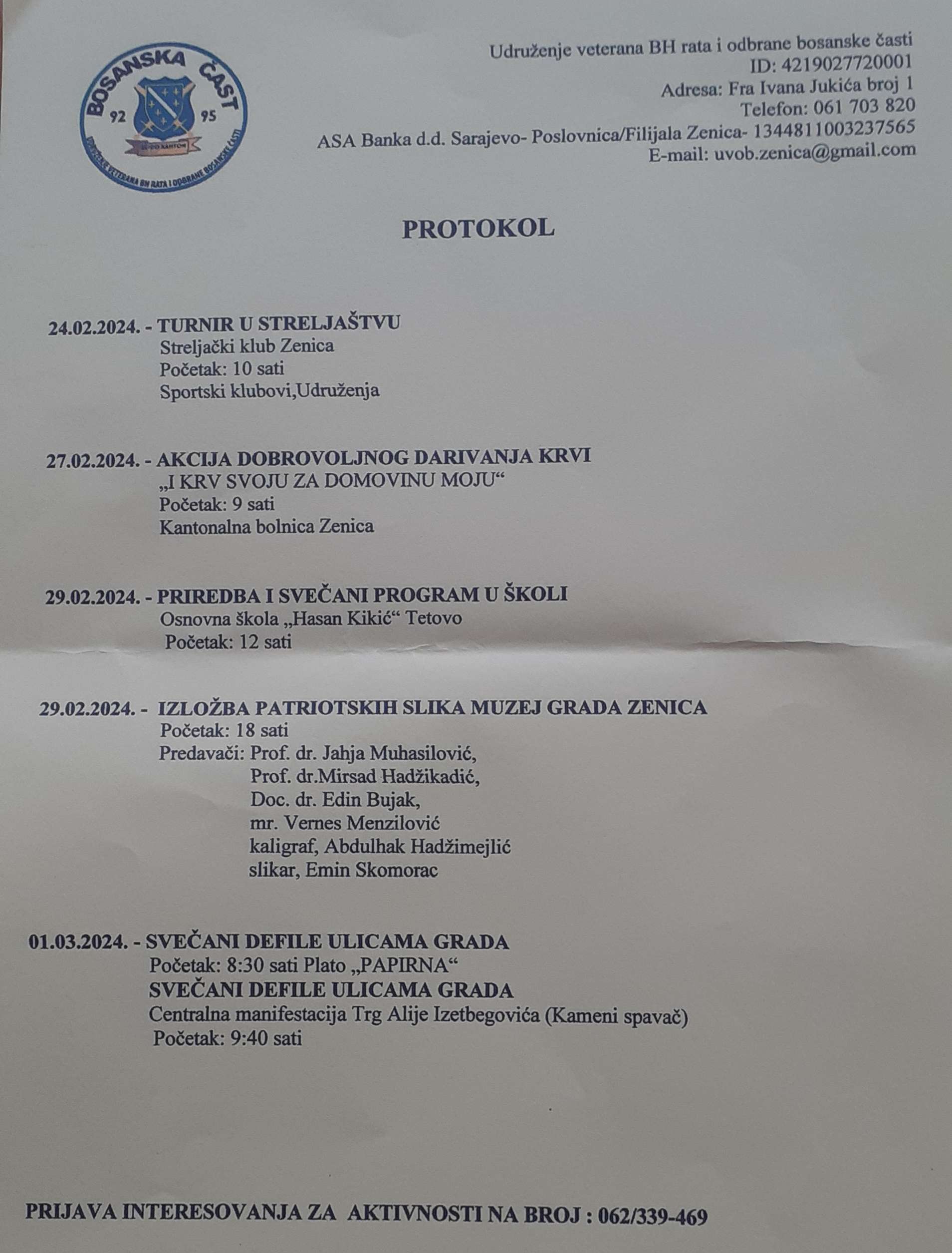 Ovaj značajni datum će biti obilježen nizom manifestacija, prvi je najavljen već za subotu, 24.2., a riječ je o turniru u streljaštvu u organizaciji Streljačkog kluba Zenica, sa početkom u 10 sati uz učešće sportskih klubova i Udruženja.
