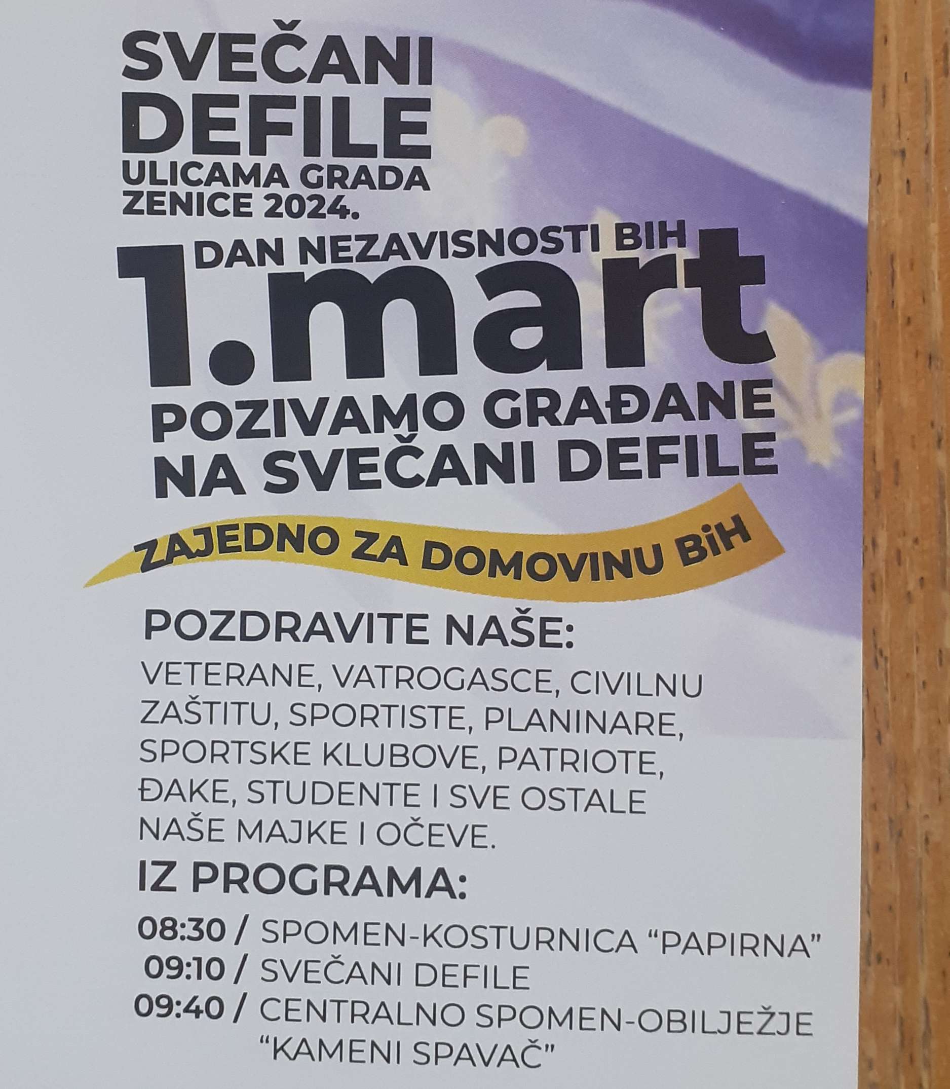 -Ovo je jedan od najsvjetlijih trenutaka u novijoj istoriji naše domovine i pozivamo građanke i građane Zenice da zajednički prodefilujemo i na takav način damo svoj doprinos u obilježavanju ovog značajnog datuma za sve nas -, kazao je Sedin Biogradlija, predsjednik Skupštine Udruženja „Bosanska čast“.