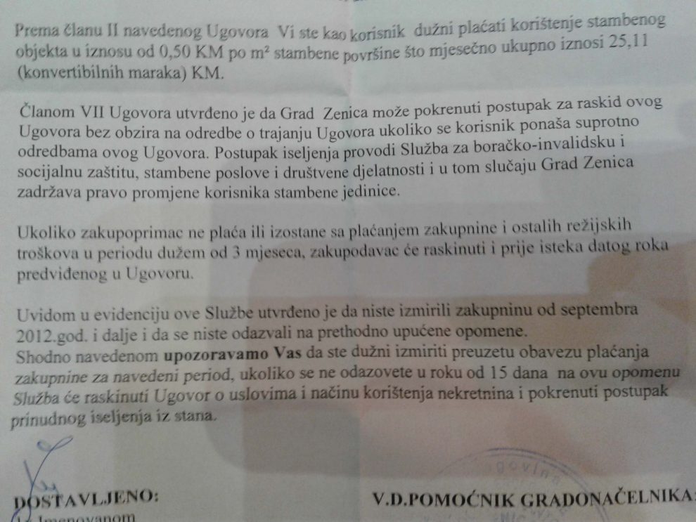 Napominjemo i to da je veći dio ovih potraživanja zastario, te da ih Gradska uprava ne bi uspjela naplatiti preko suda. Očito je da slanjem ovakvih obavijesti formulisanih u kranje agresivnom tonu, Gradska uprava na čelu sa Fuadom Kasumovićem nastoji zastrašiti zeničke Rome, te od najugroženijih kategorija našeg društva izvući još koju marku pred predstojeću izbornu kampanju. Romi neće platiti zastarjela potraživanja, a sama nadležna Gradska služba, kao i Gradsko vijeće, krivi su što nisu pronašli prihvatljiv modul naplate ovih potraživanja, koji bi doveo do održivog sistema socijalno-neprofitnog stanovanja. Uopšte, sam gradonačelnik Kasumović je kriv što za dvije godine svoga mandata u Zenici nije realizovao ni jednu jedinu investiciju kojom bi bili zaposelni građani Zenice, te i sami zenički Romi, jer da rade mogli bi i zakupninu uredno izmirivati.