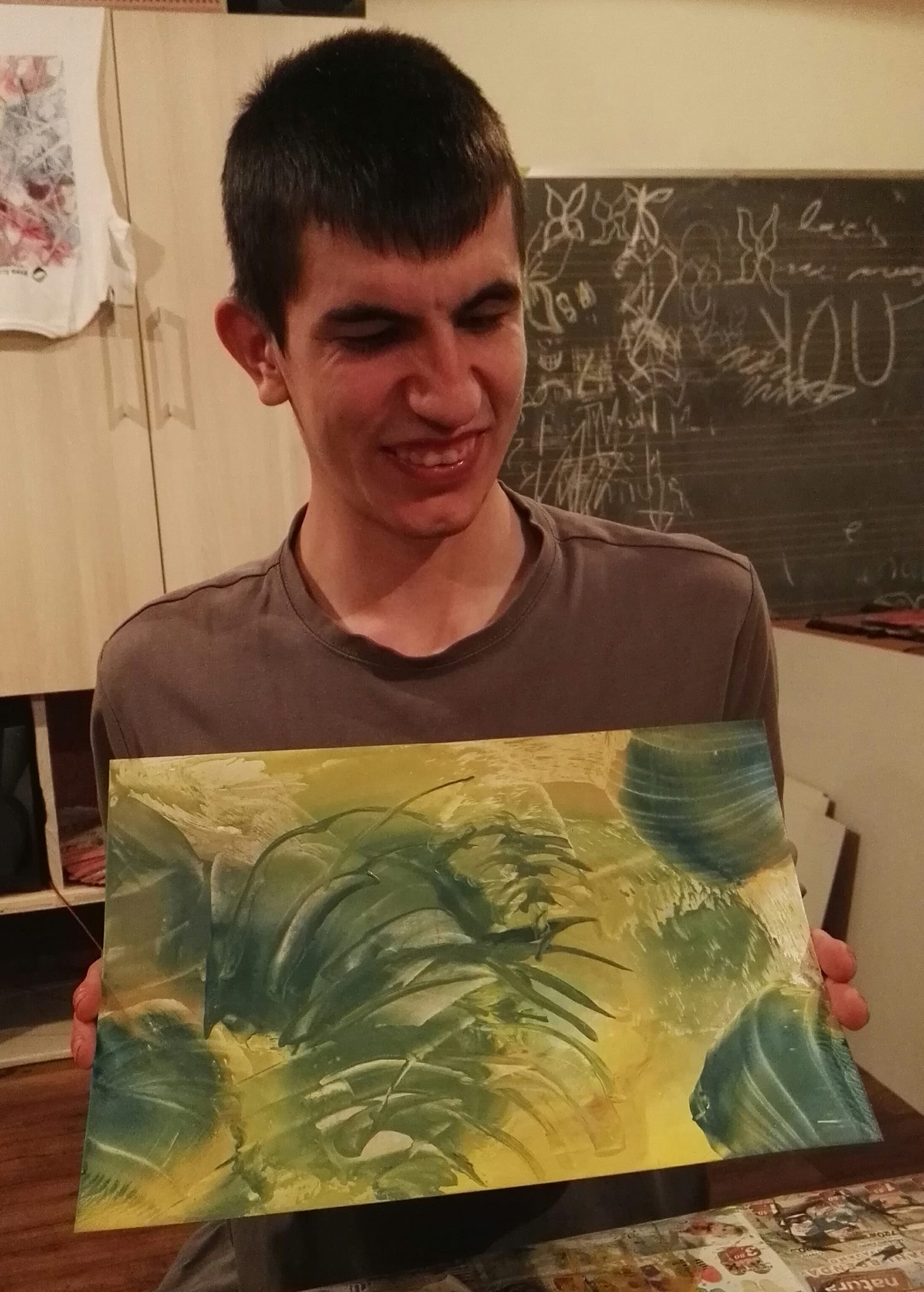 Posjetili smo Udruženje roditelja djece sa posebnim potrebama i zatekli jednu radionicu. Naime Cabaret club, sa braćom Ivanom i Andrijom Petrović, inače organizatorima CABARET WINTER FEST-a, koji se održava u našem gradu od 15.12.2016. do 01.01.2017., te zenička slikarka enkaustike Zdena Šarić-Pisker, već skoro tri mjeseca sa osobama sa posebnim potrebama rade časove oslikavanja pomenutom tehnikom.