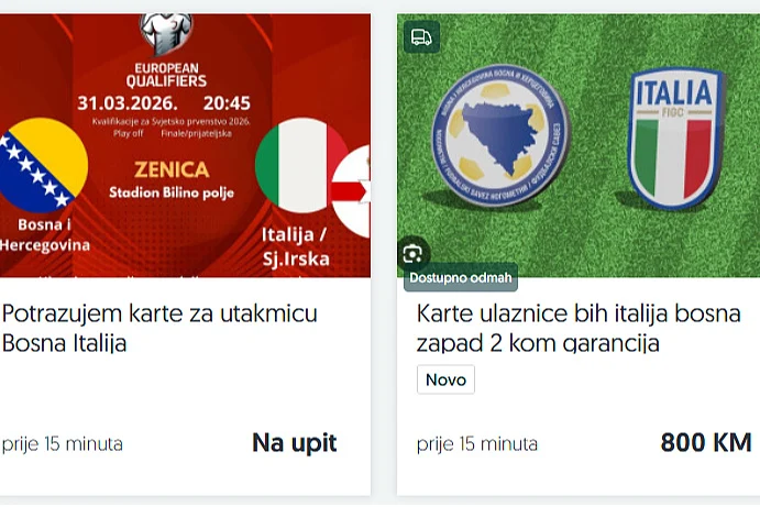 Naime, već postoje oglasi na kojima se prodaju ulaznice, a cijene se kreću od 500 do vrtoglavih 800 KM.