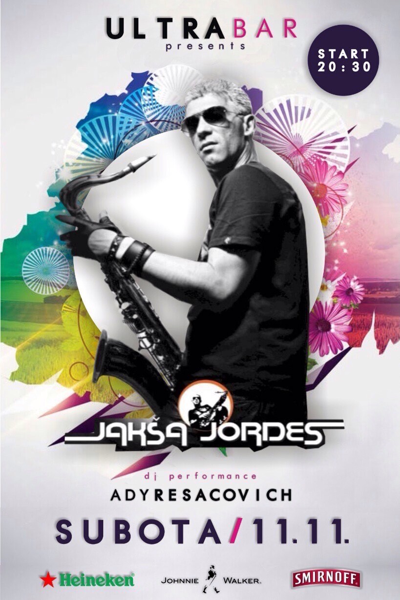 Party koji spremamo priređuje Jakša hrvatski saksofonist,skladatelj i pjevač pop i house muzike. Svirao je samo sa najboljima poput Darke Rundeka, Nene Belana, a predgrupa je bio Alexandri Stan , James Brown… Dakle,ono što vas očekuje ove Subote je pravi spektal odlične muzike, vrhunskih pića i najbolji party u gradu.