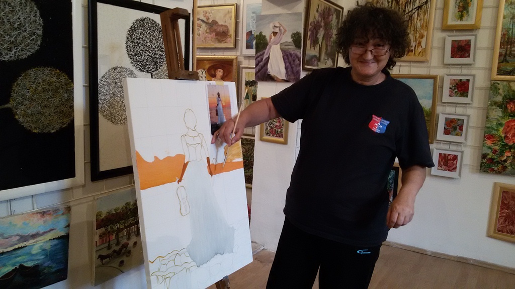 „Dok sam u galeriji ne osjetim nikakav teret niti umor. Tek kad dođem kući onda osjetim malo umora. Ovo je opuštajuća atmosfera gdje nema nikakvog stresa niti pritiska. Svi rade i svi su raspoloženi. Vlada jedna pozitivna energija. Ovdje ko dođe, može uživati. Što se mene tiče, slikam ulje na platnu, na svili, na staklu, a izrađujem i unikatne tašne“, kaže Bićo-Družić koja se bavi i slikanjem na kišobranima.
