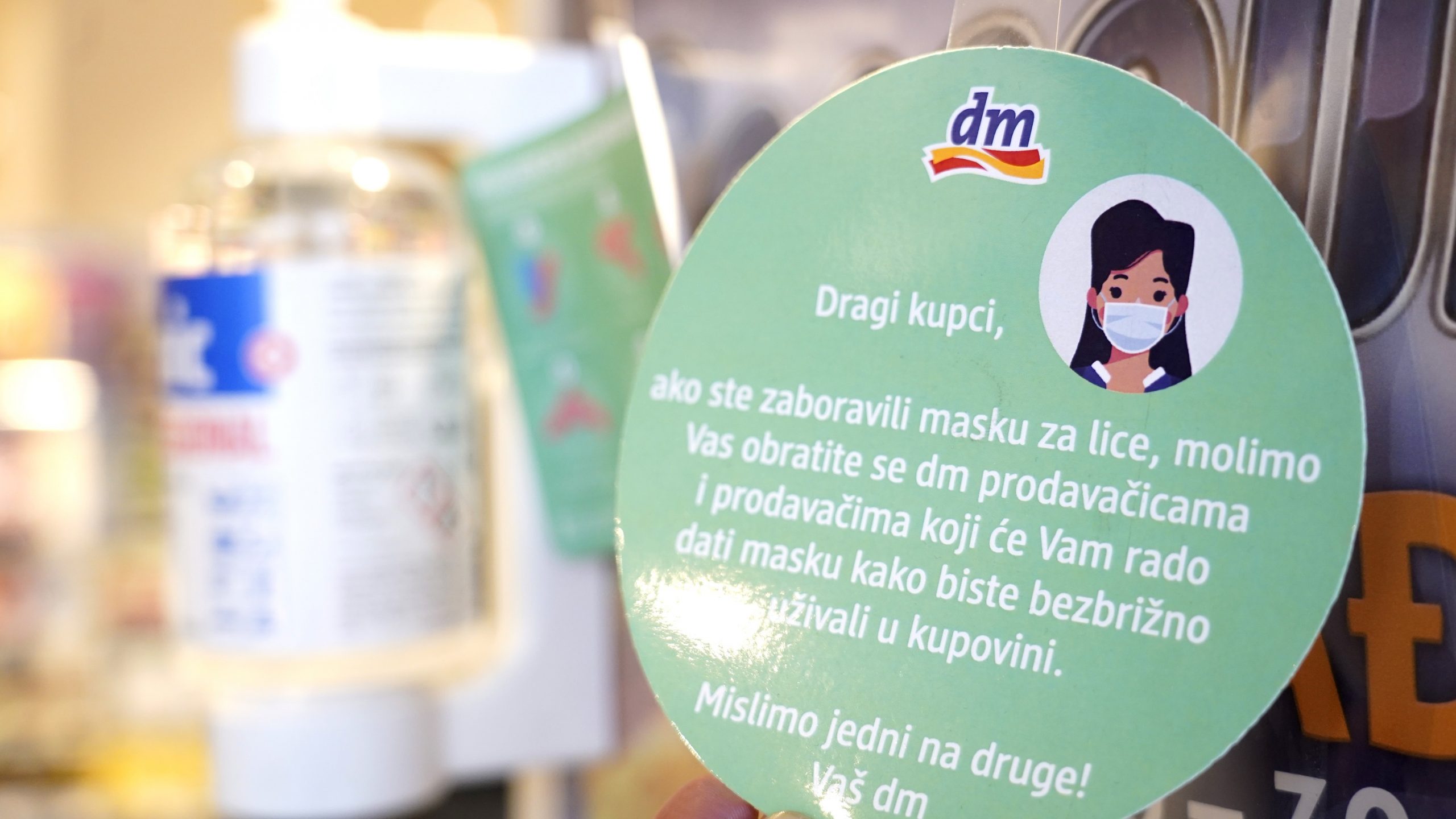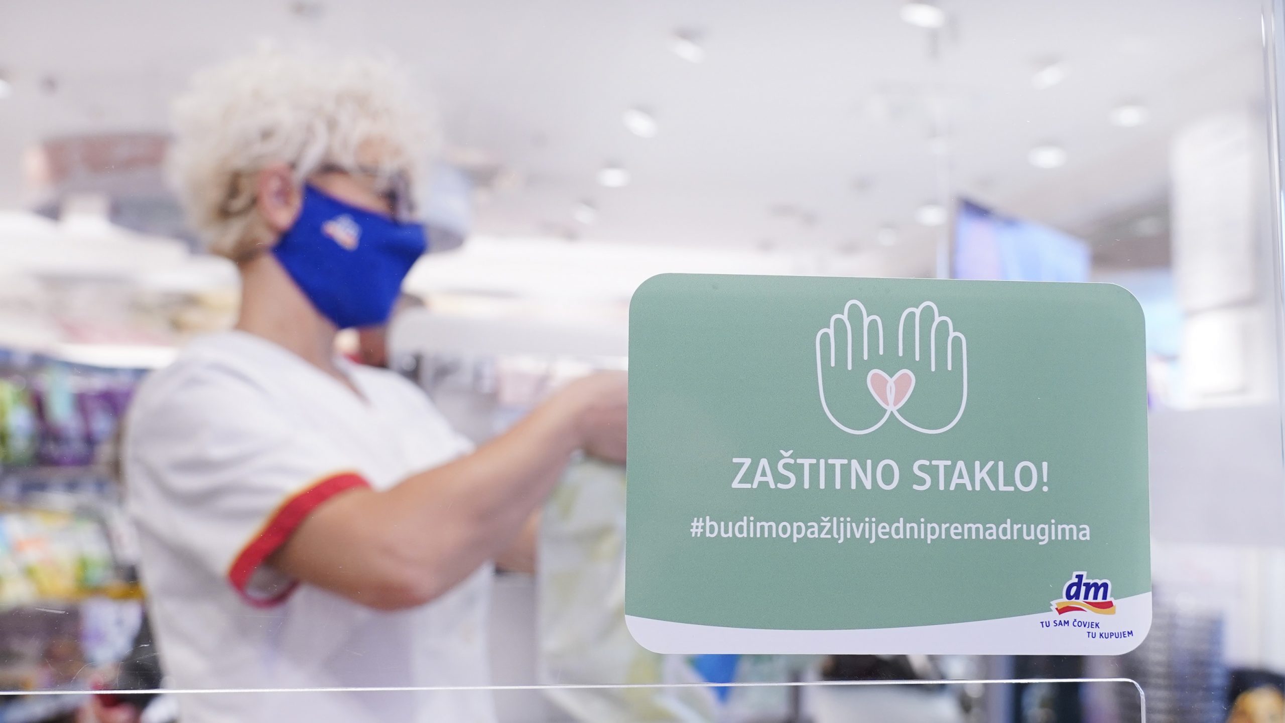 U cilju zaštite zaposlenika i kupaca, već krajem februara kompanija dm formirala je tim za praćenje situacije uzrokovane pandemijom. U novoj organizaciji rada, u okviru protekle poslovne godine doneseno je niz odluka i mjera, koje se primjenjuju i danas. Sprovodi se rad u smjenama uz minimalan kontakt zaposlenika, vrši potpuna dezinfekcija radnog prostora, a za kupce je osigurana zaštita. Tako svi kupci koji u dm prodavnicu dođu bez zaštitne maske, od dm prodavača mogu zatražiti besplatnu, na raspolaganju su sredstva za dezinfekciju ruku i obuće, a tu su i oznake za održavanje distance. Na kasama se podstiče kartično plaćanje, a fizičkom pregradom dodatno je ograničen kontakt kupca i prodavača. Gdje to radno mjesto dozvoljava, potiče se rad od kuće. Zaposlenicima je sada na raspolaganju i online psihološka podrška, a dm je obezbijedio i nagradu za doprinos tokom pandemije u ukupnom iznosu od 440.000 KM, tj. do 400 KM po zaposleniku, u skladu sa definisanim kriterijima.