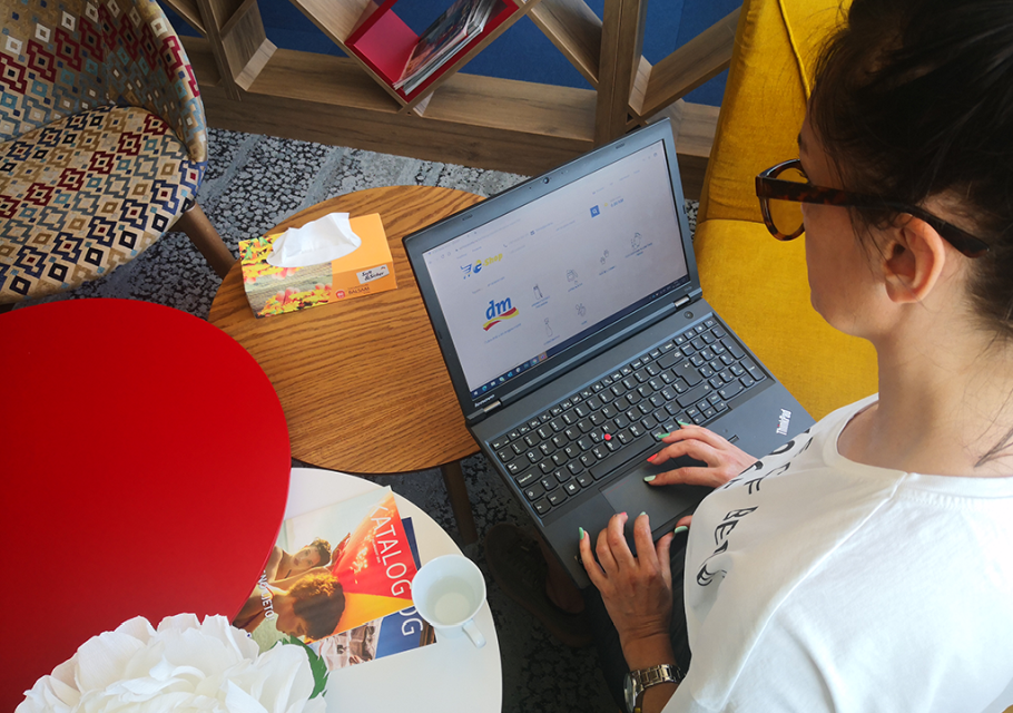 Prateći promjene kupovnih navika, gdje je prema istraživanju agencije Valicon došlo do značajnog rasta online kupovine robe široke potrošnje (22% rast u julu 2020), dm je u saradnji s partnerom „JP BH Pošta“ d.o.o. Sarajevo pokrenuo e-Shop. Novom uslugom za kupce omogućena je narudžba odabranih proizvoda iz dm asortimana na području cijele Bosne i Hercegovine čime je dm uspio dosegnuti do kupaca u mjestima u kojima još uvijek nema svoje prodavnice. U ponudi e-Shopa trenutno je 1.200 najtraženijih artikala, a plan za narednu poslovnu godinu je širenje ponude na 5.000 artikala.