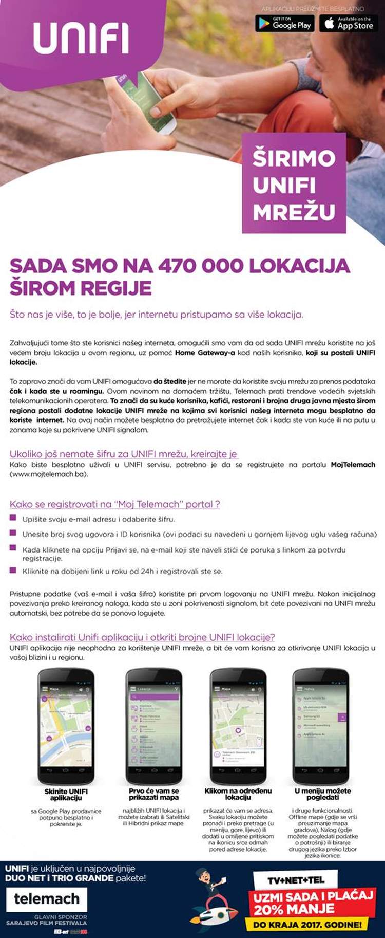 UNIFI: wi-fi mreža na 470.000 lokacija u zemlji i regionu  – Uz UNIFI surfajte netom bilo gdje, dijelite svoje slike sa prijateljima ili gledajte TV u pokretu preko D3GO servisa.