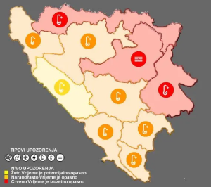 Upaljen je narandžasti i crveni meteoalarm na području BiH.