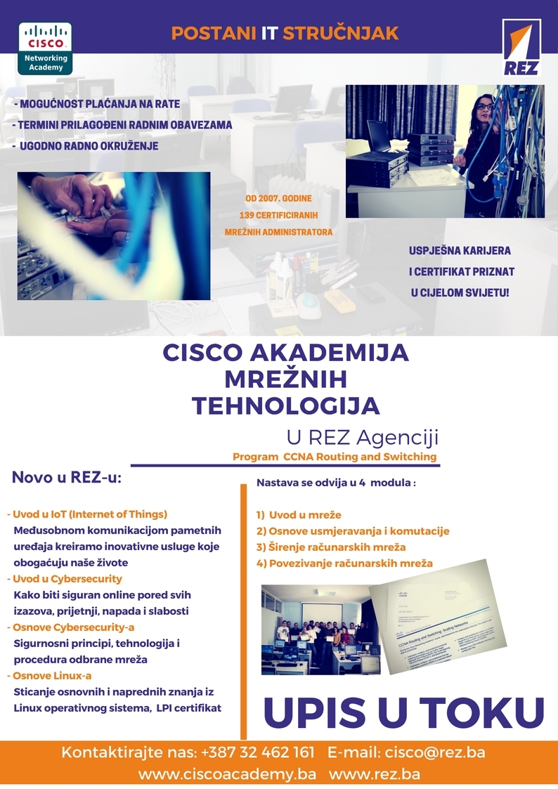 Upis u XI generaciju Cisco akademije u REZ Agenciji  – Nakon što je i deseta generacija Cisco Akademije u REZ Agenciji uspješno završila obuku, obavještavamo sve zainteresovane kandidate da je počeo upis u XI generaciju Cisco akademije.