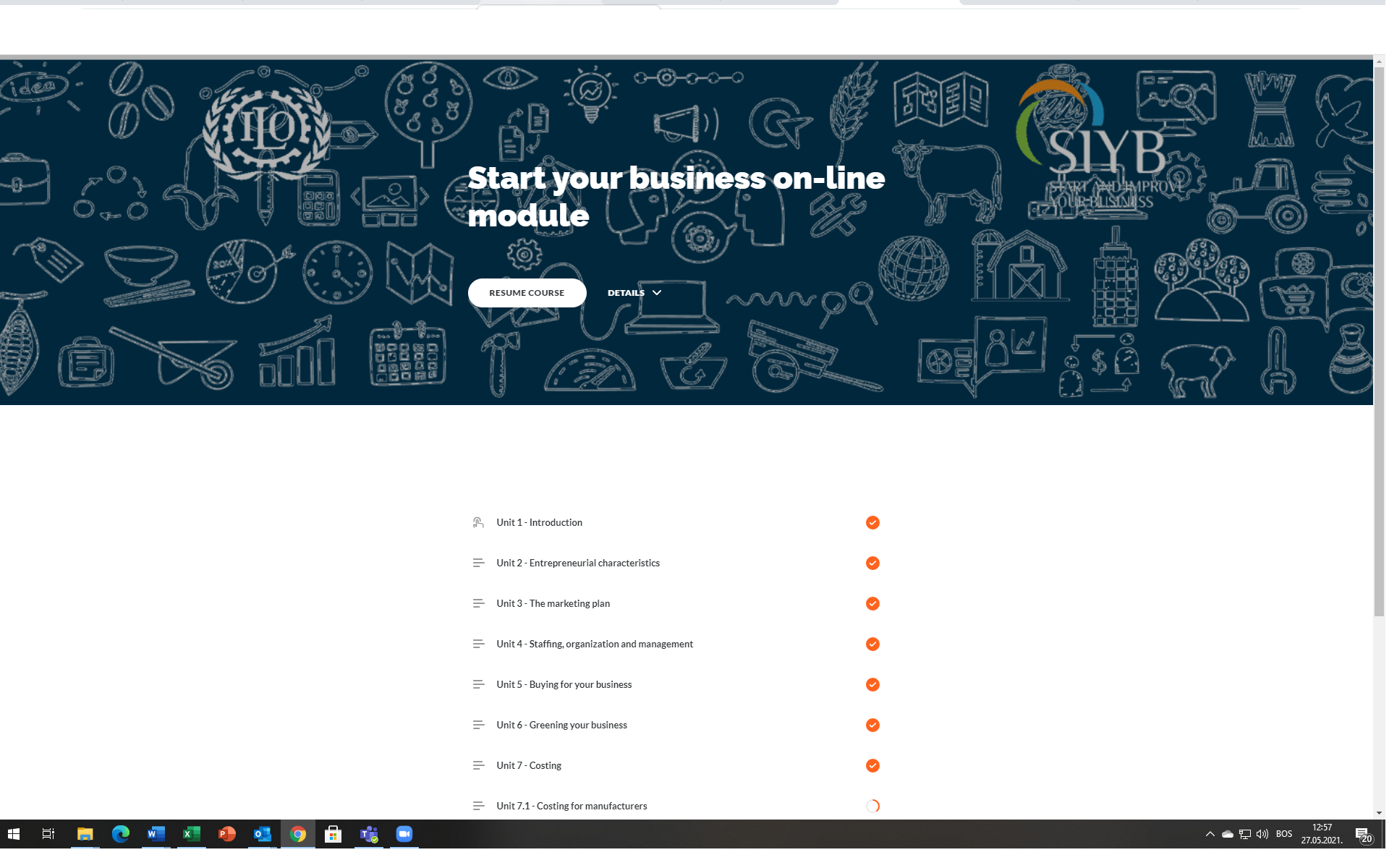Uposlenici Agencije ZEDA na obuci za trenere budućih poduzetnika- U periodu od 25.-27. maja 2021. Međunarodna organizacija rada – ILO održala je RToT – refresher training of trainers – nakanadni trening za trenere koji su prošli obuku organizovanu od strane ILO-a u 2019. i 2020. godini po SIYB metodologiji obuke za poduzetnike na kojoj su učestvovali i uposlenici Agencije ZEDA.