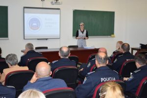 Prvi čas edukacije na temu “Postupanje policijskih službenika po prijavama nasilja u porodici i provođenje zaštitnih mjera“, policijskim službenicima održala je profesorica Fakulteta za kriminalistiku, kriminologiju i sigurnosne studije Sarajevo, Marija Lučić Ćatić koja je u svom predavanju ukazala na osnovne segmente zakonodavnog i pravnog okvira koji definišu postupanje policijskih službenika na dokumentovanju krivičnih djela iz ove oblasti, kao i na načine brzog prepoznavanja takvih djela i njihovog uspješnog dokumentovanja i dokazivanja.