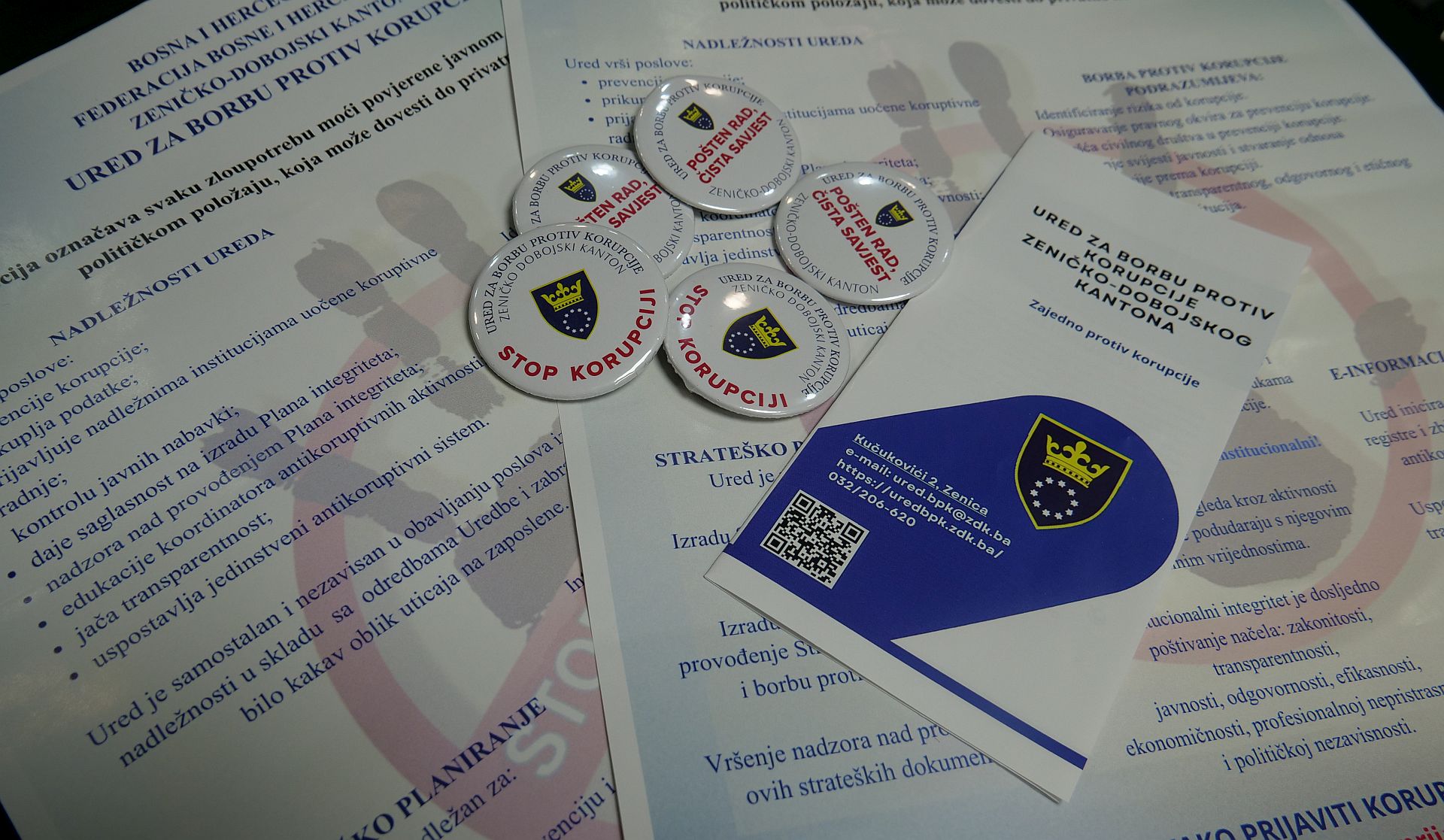 Svim kantonalnim institucijama, uključujući bolnice, policiju i inspekcije, dostavljeni su i bedževi koje uposlenici nose na reveru, kao simbol zajedničke borbe protiv korupcije i sistemskog odgovora na ovaj društveni izazov.