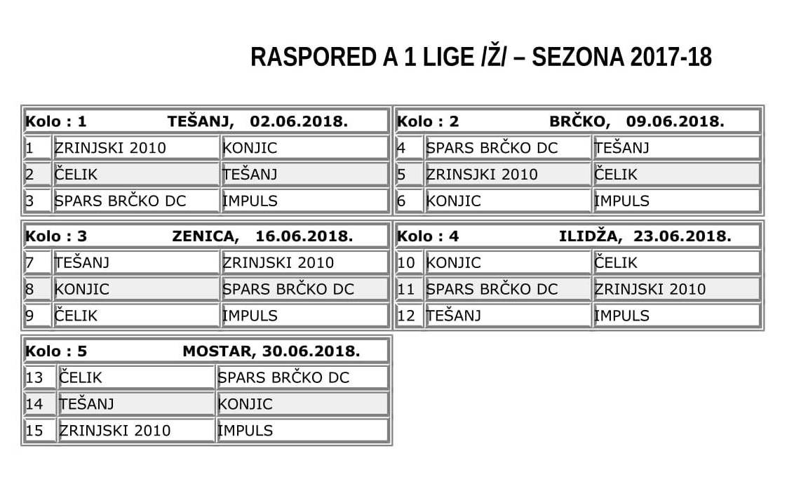 Prilog: Raspored A1 lige /Ž/ – sezona 2017/2018
