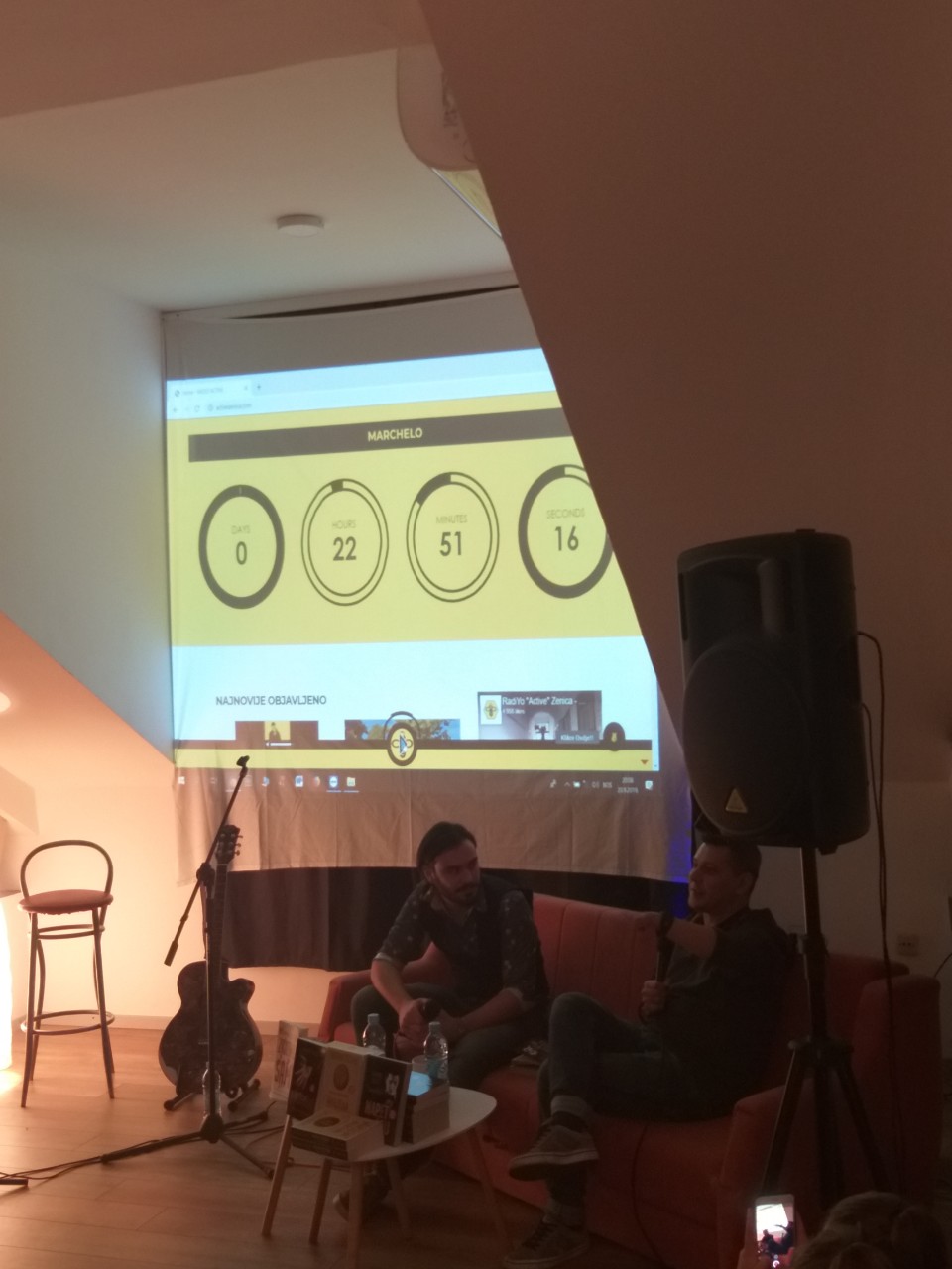 U petak, 20.09., u prepunim prostorijama udruženja „Naša djeca“ održano je književno veče Marka Šelića – Marchela. Kroz razgovor, Marchelo je publiku upoznao sa svojim književnim stvaralaštvom, ali i sa svojim životnim stavovima i iskustima.