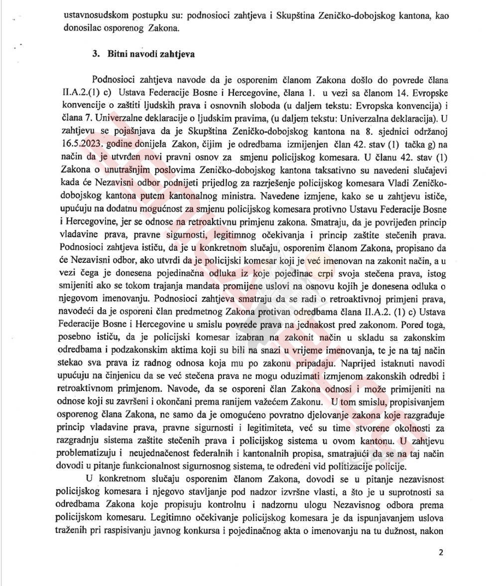 Ustavni sud Federacije Bosne i Hercegovine, odlučujuci o zahtjevu jedne trećine poslanika u Skupštini Zeničko-dobojskog kantona za ocjenu ustavnosti člana 3. Zakona o izmjenama i dopuni Zakona o unutrašnjim poslovima Zeničko-dobojskog kantona, na osnovu člana IV.C.3.10.