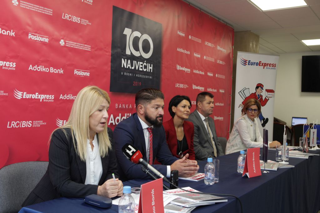 ”U ovom specijalnom izdanju Poslovnih novina objavljujemo 250 najvećih kompanija po prihodu iz pet zemalja regiona. Ali analizu smo uradili za Top 600 kompanija u Sloveniji, Hrvatskoj Srbiji, BiH, Crnoj Gori i Makedoniji. Došli smo do podatka da su one oprihodovale 110 milijardi eura, te da u regiji samo 13 kompanija ima prihode preko milijardu eura. Važan sadržaj ovogodišnje publikacije je i analiza poslovanja kompanija u čijim upravljačkim strukturama su žene. Od ukupnog broja rangiranih firmi, njih 17 posto vode žene. Rangirane kompanije u 100 najvećih u BiH kojima upravljaju žene u prošloj godini inkasirale su 292 miliona dobiti ili 43 posto više nego godinu ranije. Također su ostvarile 816,9 miliona KM izvoza, što je povećanje za tri posto u odnosu na godinu prije”, istaknula je Alena Ahmetspahić-Fočo, direktorica projekta 100 najvećih u BiH, te dodala da će ove godine prvi put biti objavljeni podaci vodećih deset kompanija prema konsolidovanim izvještajima, koje su ostvarile više od sedam milijardi KM ukupnog prihoda.
