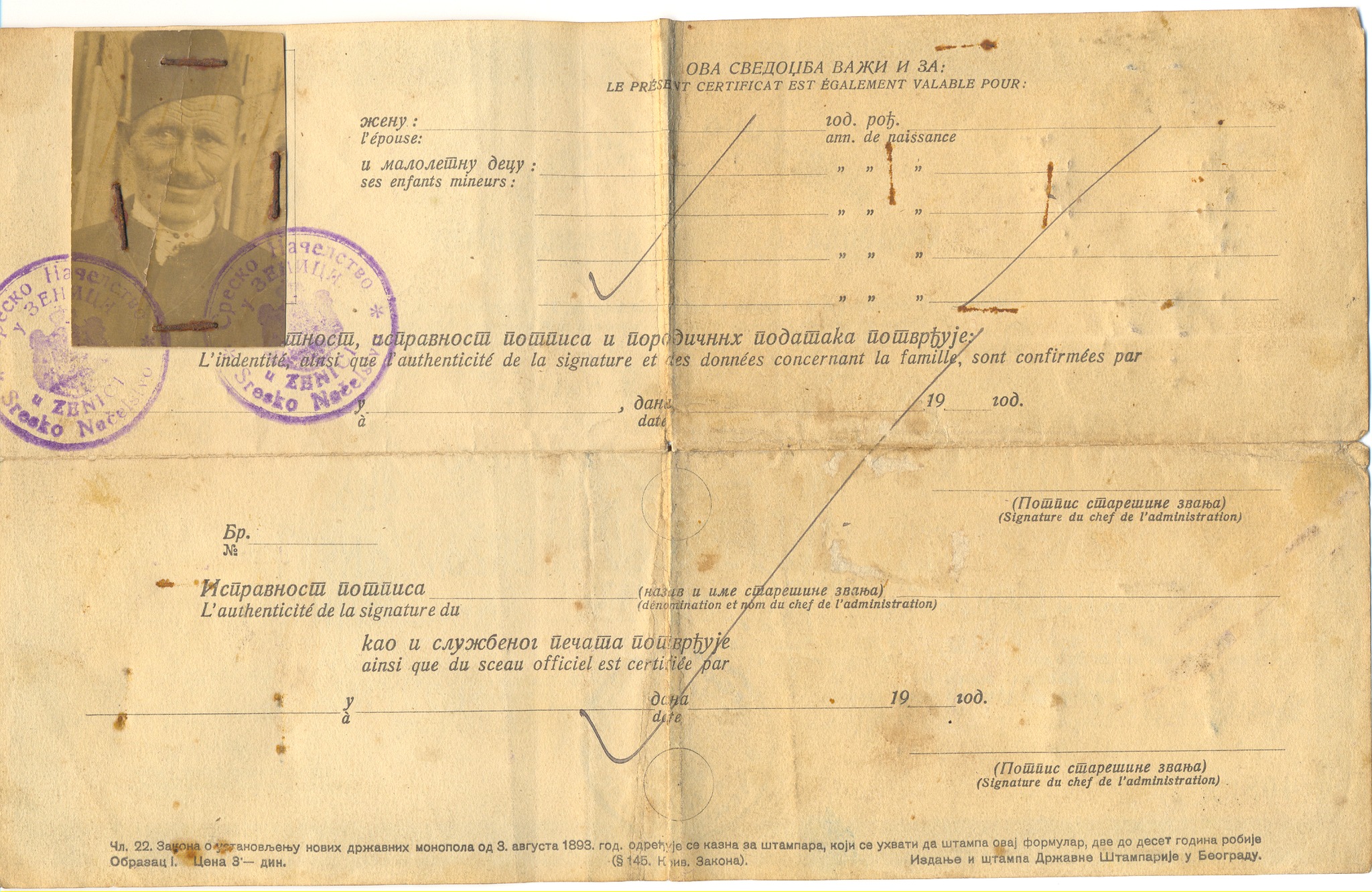 Sastavni dio uvjerenja je i opis osobe, pa se kaže da je obraz dug, oči smeđe, kosa prosjeda, visina 174 cm.