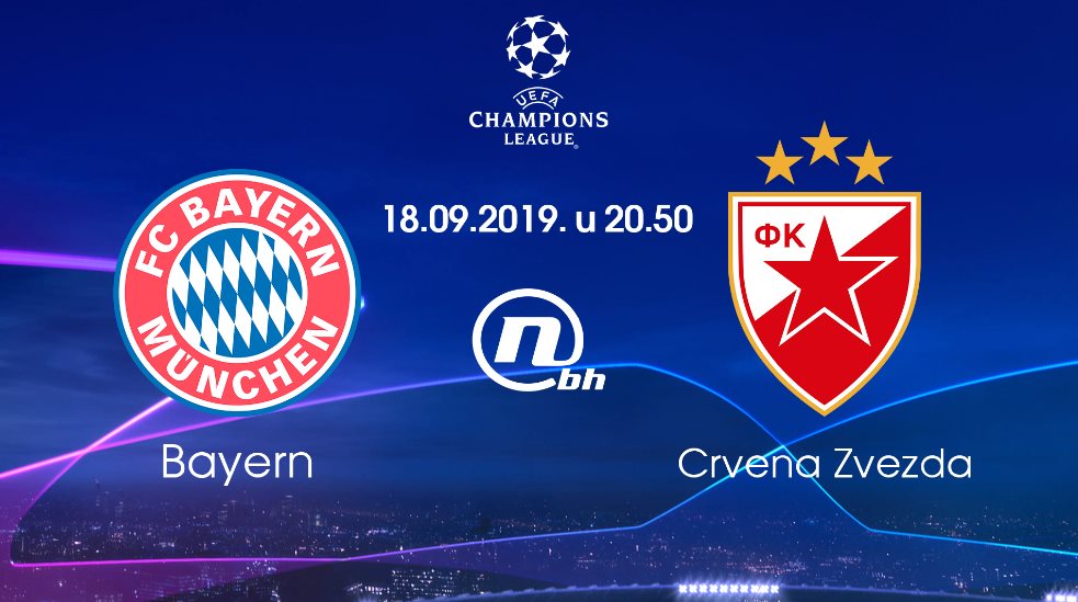 Utakmica prvog kola grupe B Lige prvaka između Bayerna i Crvene Zvezde igra se večeras od 20.50 sati uz direktan prijenos na Novoj BH. Program će početi uvodnom emisijom već u 20.30 sati, uz stručnu analizu Adisa Hadžića i gosta Elvira Baljića, a komentator meča bit će Denis Huseinbegović.