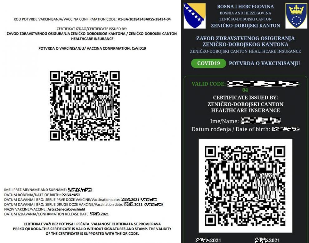 Građanima Zeničko-dobojskog kantona, koji su okončali proces imunizacije, od ove sedmice je na raspolaganju mogućnost dobijanja besplatne potvrde sa QR kodom.