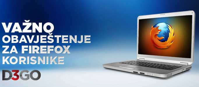 Važno obavještenje za korisnike D3GO web aplikacije Telemacha – Poštovani, od 07.03. tekuće godine, Mozilla pušta novu verziju internet pretraživača Firefox v52, preko koje neće biti moguće korištenje D3GO web aplikacije.