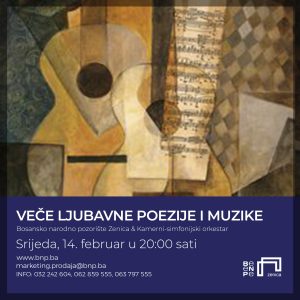 Na Kabaretskoj sceni, Bosansko narodno pozorište Zenica u saradnji sa Kamernim simfonijskim orkestrom organizuje Veče ljubavne poezije i muzike, koje će biti upriličeno u srijedu, 14. februara u 20 sati. Ovom programskom aktivnošću, Bosansko narodno pozorište oživljava tradiciju održavanja večeri u opuštenom ambijentu pozorišnog Kabarea.