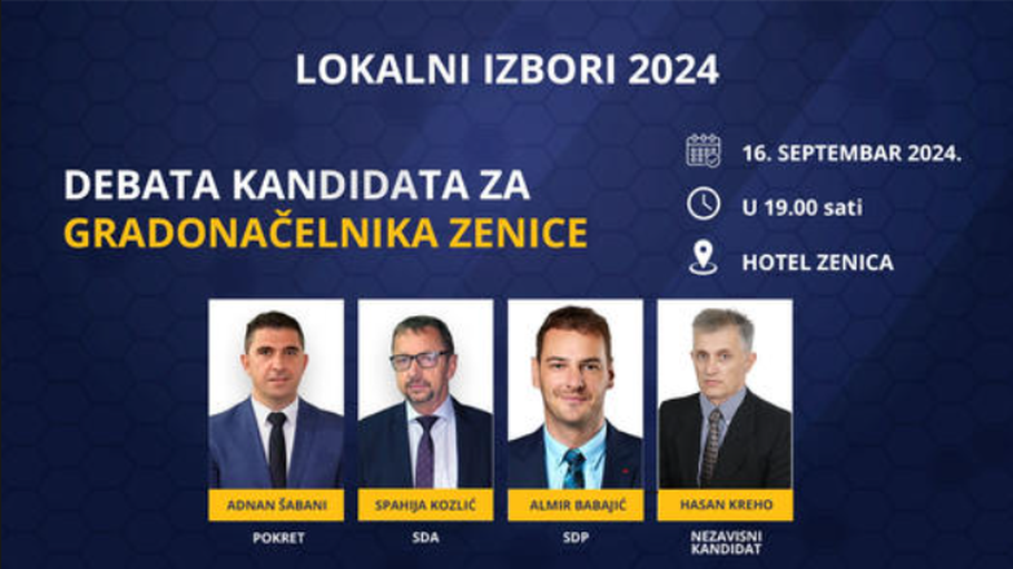 Debata kandidata za gradonačelnika će se održati u Hotelu “Zenica”, večeras, 16. septembra, s početkom u 19:00 sati.