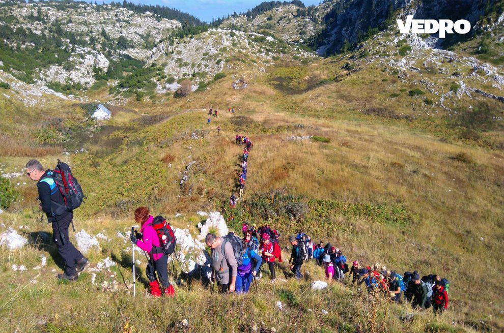 VEDRO: Skitanje do Hajdučkih vrata – Kao i legenda o Divi Grabovici, i naša jesenja avantura na planinu Čvrsnicu činila se čarobno neobičnom i nestvarnom. Hodanje uzanim stazama preko oštrog, površinskog krša pa sve do Hajdučkih vrata, za svih 69 učesnika značio je pravi izazov. Ali uspon na 2000 metara i pogled na kameni bosanski prsten, koji je još 1985. godine proglašen zaštićenim spomenikom, bili su vrijedni naših umornih tabana.