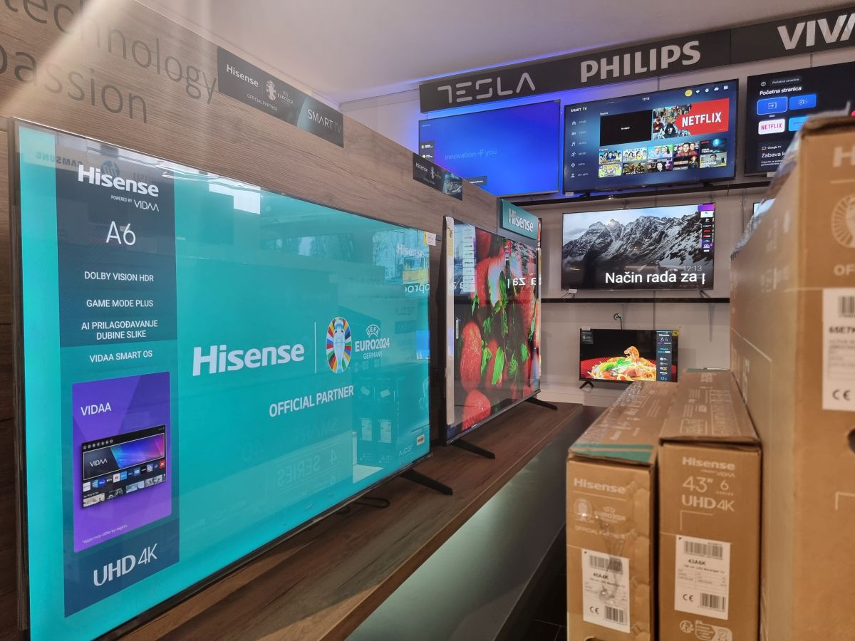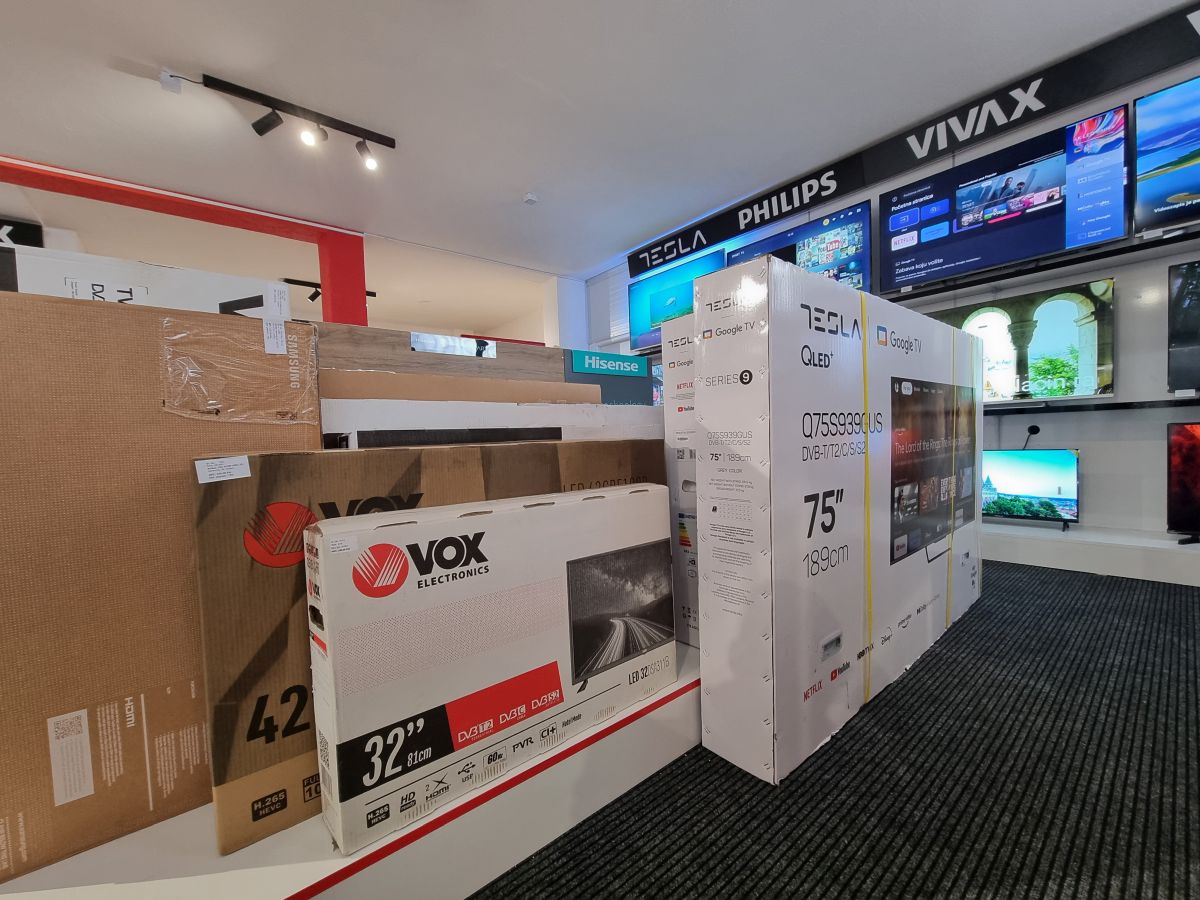 Zaljubite se u svijet kristalno jasnih slika i vrhunskog zvuka sa našim televizorima dostupnim u našoj maloprodaji. Iskoristite priliku da odaberete najnovije tehnologije koje će vaša iskustva gledanja podići na sasvim novi nivo. Veliki izbor Tesla, Hisense, VOX i Vivax televizora na stanju. Posjetite nas na adresi Zmaja od Bosne 1 u Zenici.