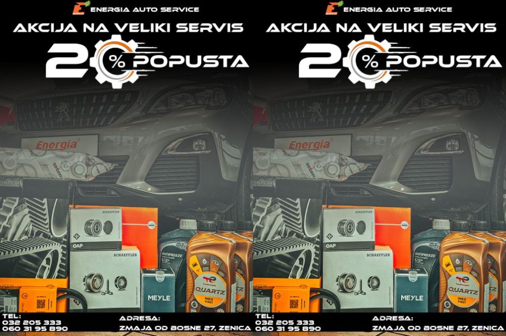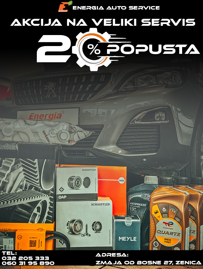Iskoristite VELIKU akciju i uradite veliki servis na Vašem automobilu uz 20% popusta na sve dijelove.