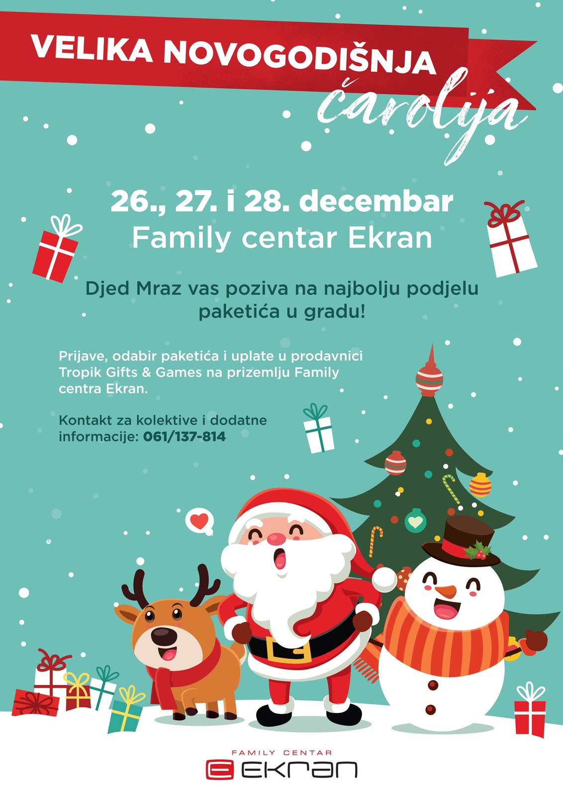 26., 27. i 28. decembra donosimo smijeh, radost i zabavu uz najbolju podjelu paketića u gradu!